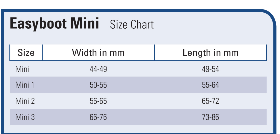 The Easycare Easyboot Mini hoof boot is a perfectly formed hoof boot, made especially to fit the smallest of hooves. The Easyboot mini hoof boots fit miniature horses, very small ponies and also foals, and are ideal for service animals too. The Easyboot mini hoof boot is quick and easy to apply; this small hoof boot is the ultimate option for tiny hooves.