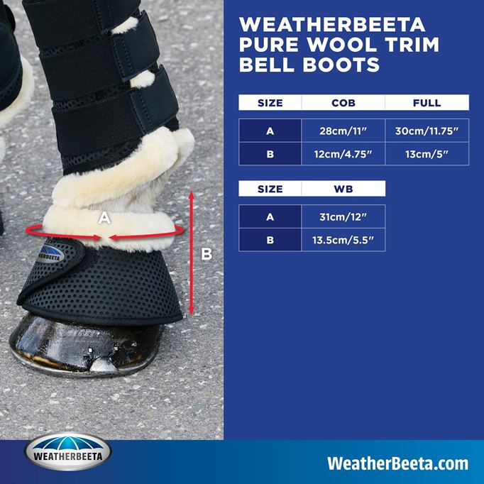 The Weatherbeeta Pure Wool Lined Bell Boots feature a soft and durable Pro Mesh BASF TPU outer, with a breathable neoprene foam lining with wool along the top for added extra comfort.