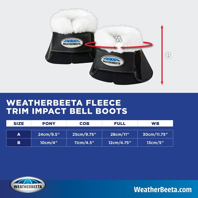 The Weatherbeeta Fleece Impact Bell Boots also feature a non twist design to help the boot stay in place and a quick and easy to use touch tape closure.