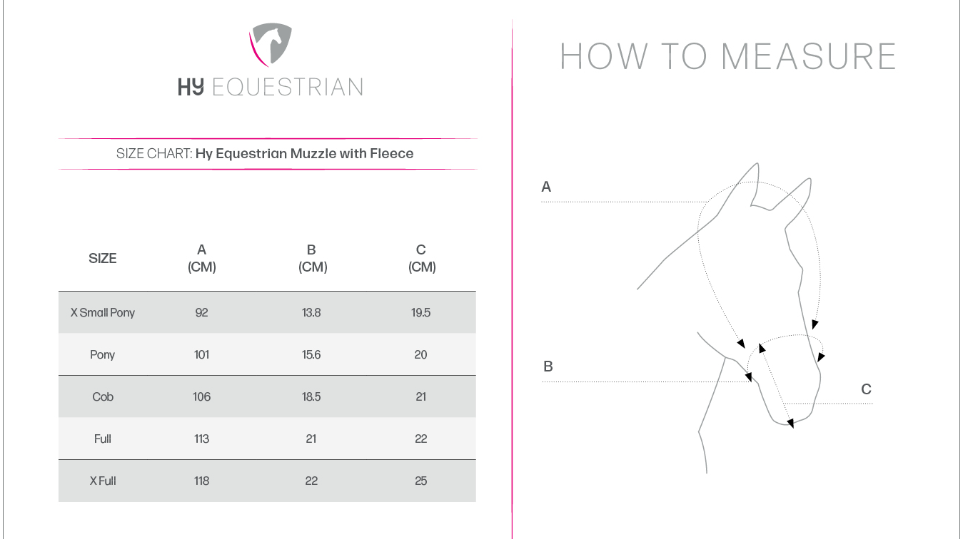 A soft non-slip nylon muzzle with additional fleece padding on the inside to prevent sores on the horse’s muzzle.