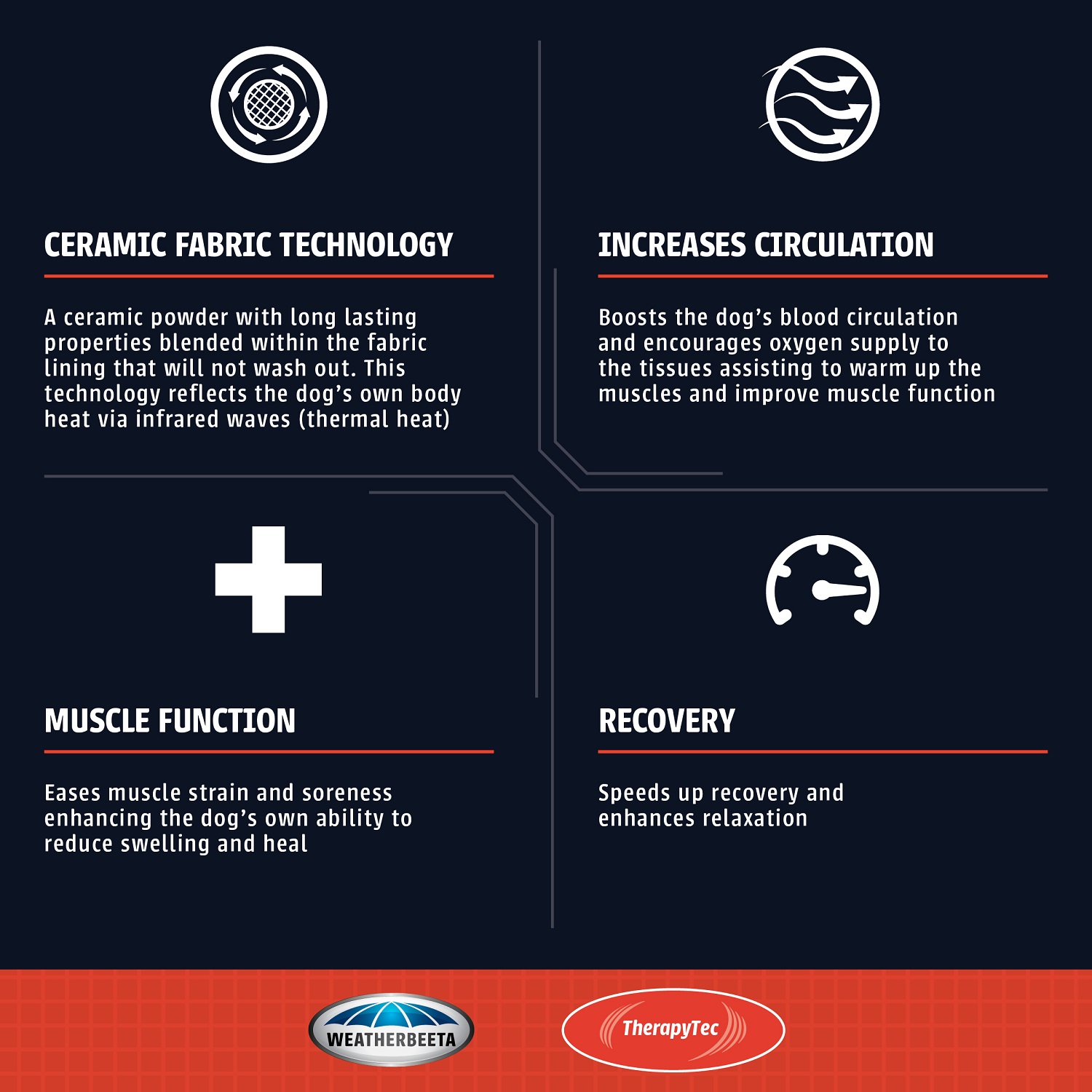 This theray-tec rug also features a channel quilted outer, 220g polyfill, ceramic lining over the shoulders, back and quarters, traditional side gussets for natural movement, memory foam wither relief that contours to the horses shape and lifts the rug off the withers, Ezi-clip front closure, low cross surcingles and a tail cord.