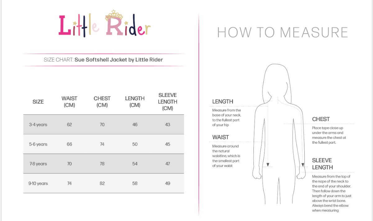 This smart Sue Softshell Jacket by Little Rider offers the ultimate in flexibility and comfort as the soft fabric is lightweight and quick drying.
