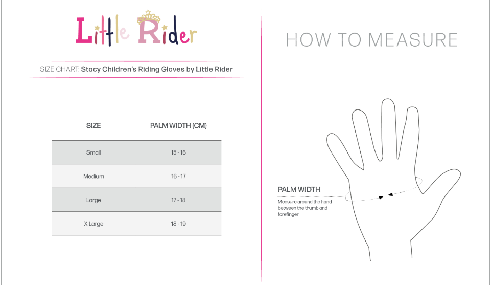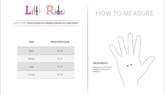 These cute Stacy Children's Riding Gloves by Little Rider have added reinforcement to prevent excess wear from the reins. The touch tape fastenings complete with Little Rider emblem really finish the gloves off.