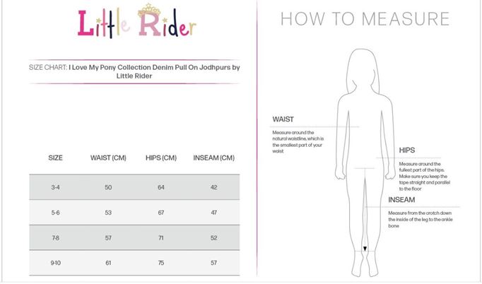 The silicone heart patterned knees ensure added grip and security when in the saddle. Finished with pink trim, practical pockets and Little Rider and ‘I Love My Pony’ logos and detailing, these I Love My Pony Collection Denim Pull-Ons are bound to be a hit with your little rider!