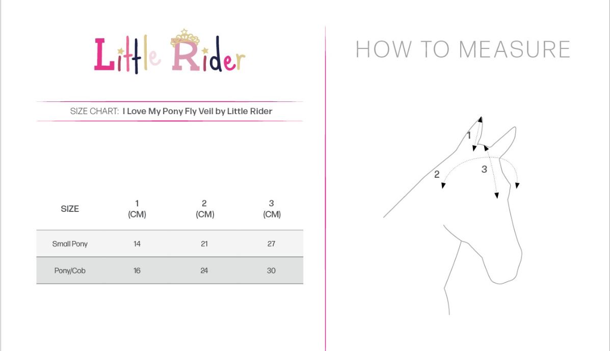 The Little Rider fly veil featuring the ‘I Love My Pony’ design is a stylish edition to your ponies wardrobe!