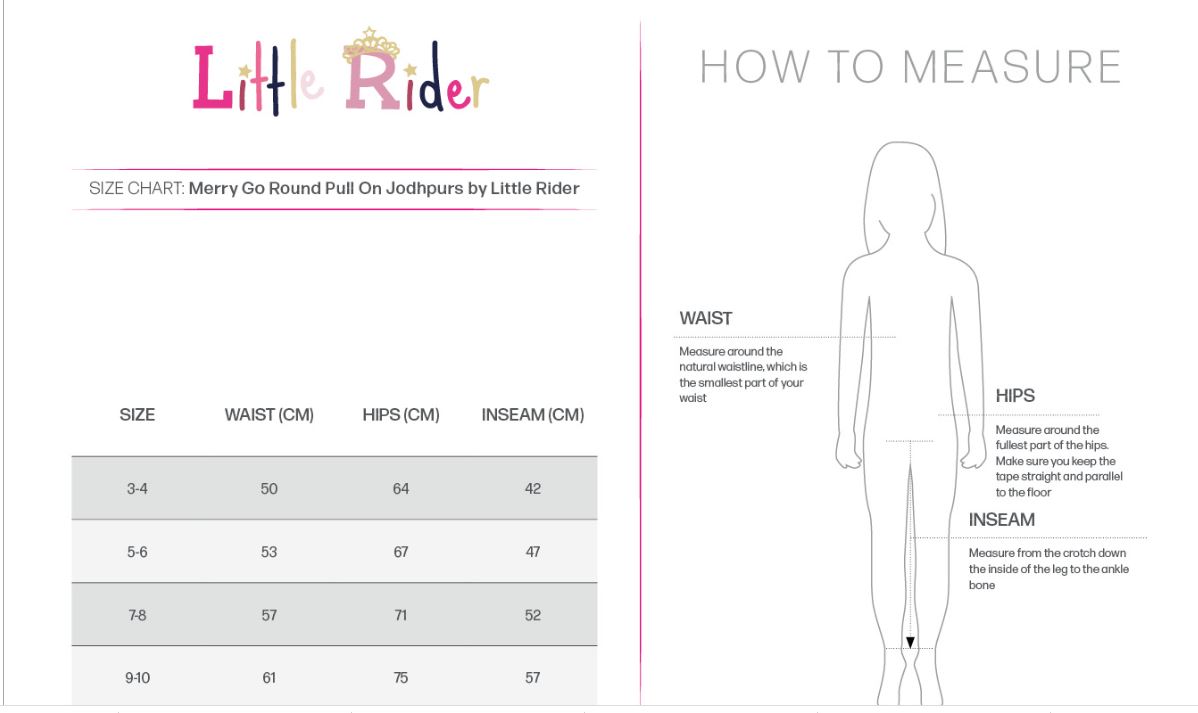 Merry Go Round Pull On Jodhpurs by Little Rider are designed for a comfortable and secure fit allowing your child to enjoy riding and spending days down the yard.