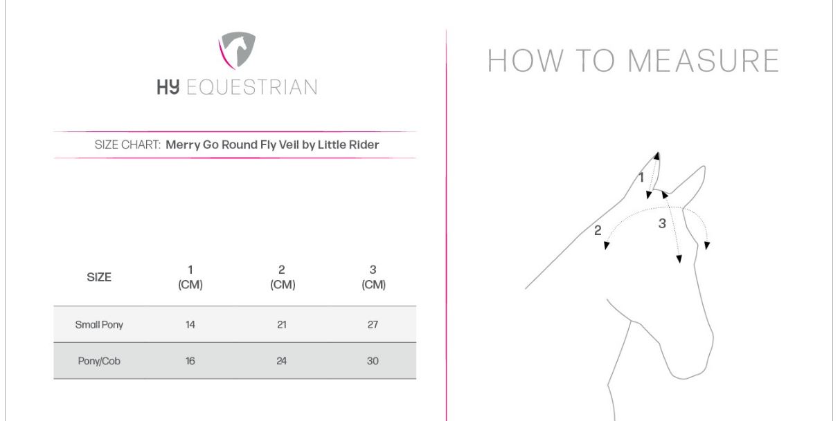 The Merry Go Round Fly Veil by Little Rider is made with a quality close knit crotchet, featuring polyester ears that provide a comfortable and secure fit, whilst being breathable at the same time. A pink cord binding and white Little Rider logo completes the look.