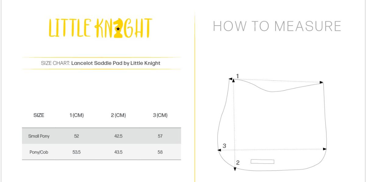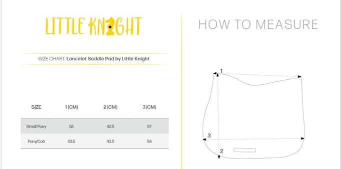 A yellow girth strap and touch tape straps on both sides of the Lancelot Saddle Pad help hold it securely in place. Finished with a woven Little Knight label on the spine.