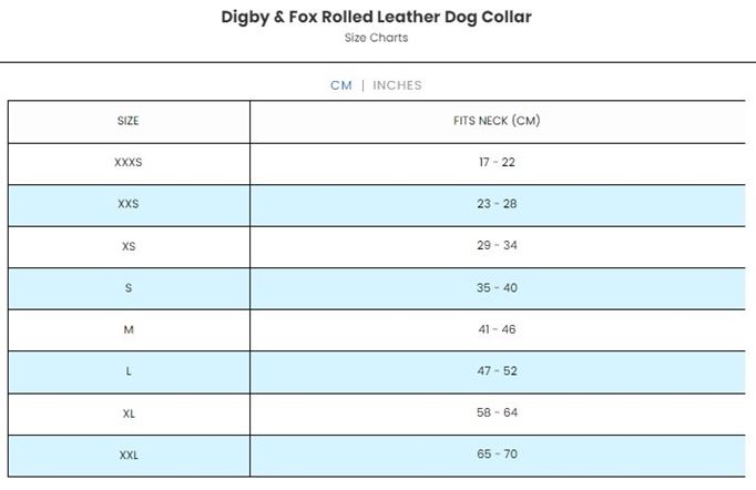 Please Note: The size chart does not give the measurements of the collar, please measure your dog's neck and compare it to the 'fits neck' section to find a size suggestion.