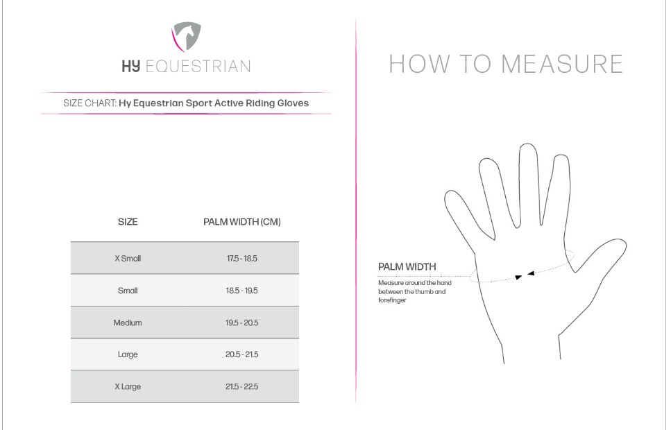 The contrasting trim and Hy logo complement the Sport Active Riding Glove for a professional look and a handy hanging loop is included on the inside.