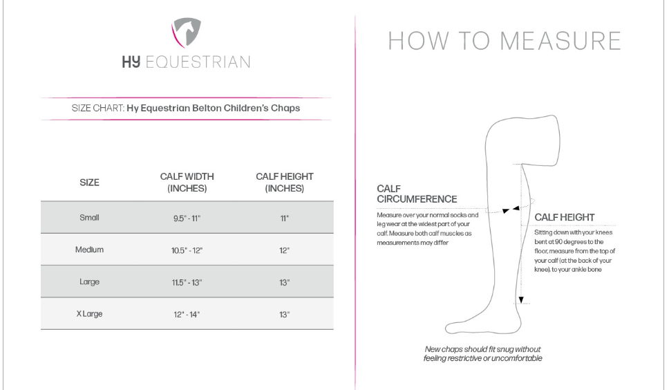 Hy Equestrian Belton Children’s Half Chaps with coloured detailing and panels to stand out from the crowd!