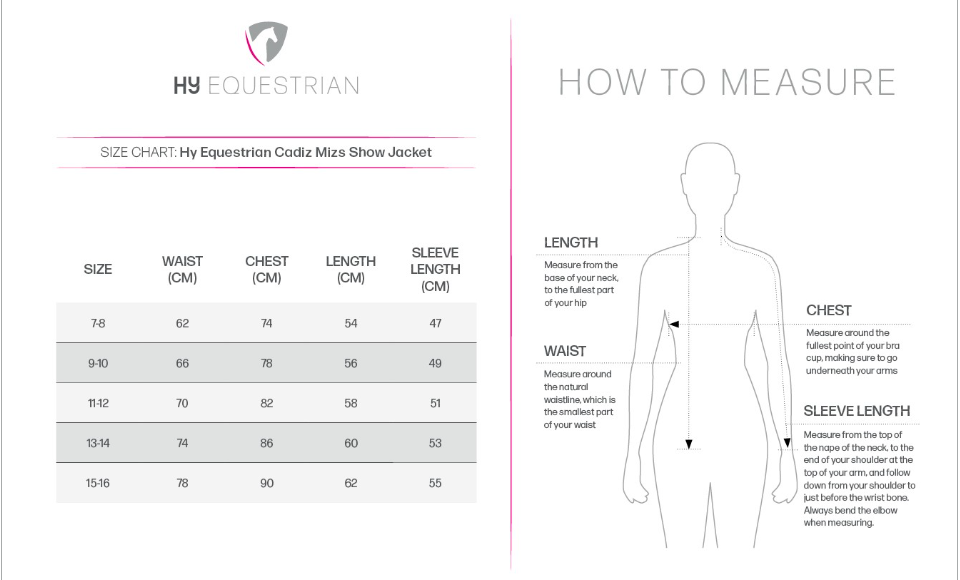 This stunning Hy Equestrian Cadiz Mizs Show Jacket has a beautiful streamlined fit.