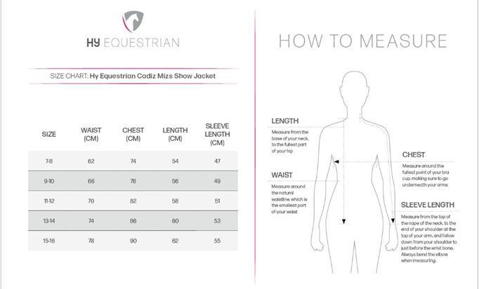 This stunning Hy Equestrian Cadiz Mizs Show Jacket has a beautiful streamlined fit.