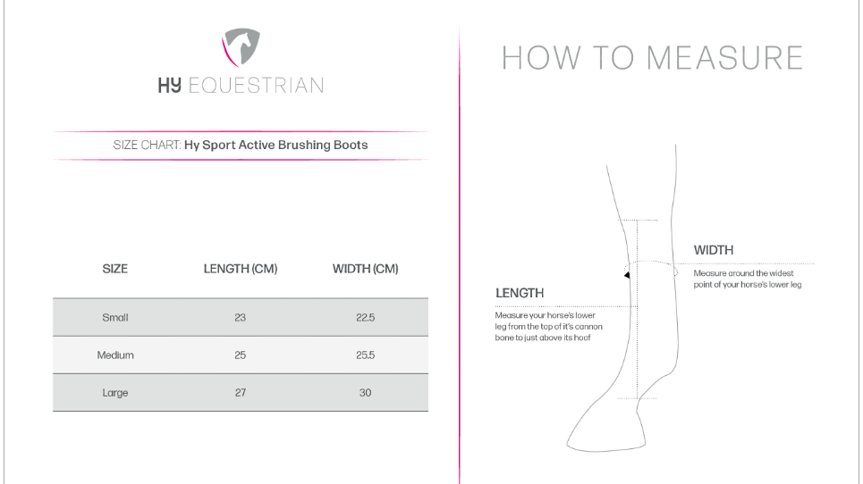 The Sport Active Brushing Boots are secured with touch tape fastenings in the Hy Sport Active colours and a rubber logo for a perfect finishing touch.