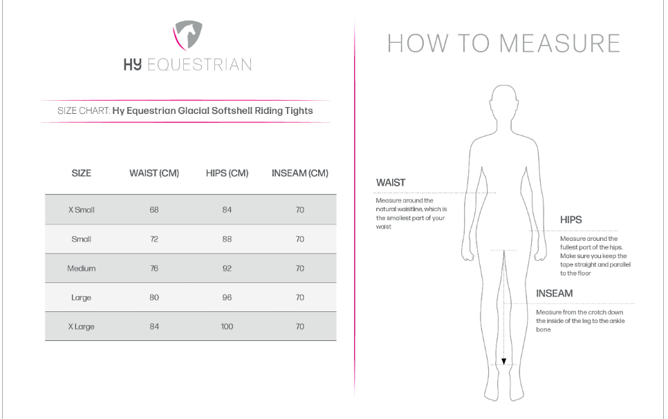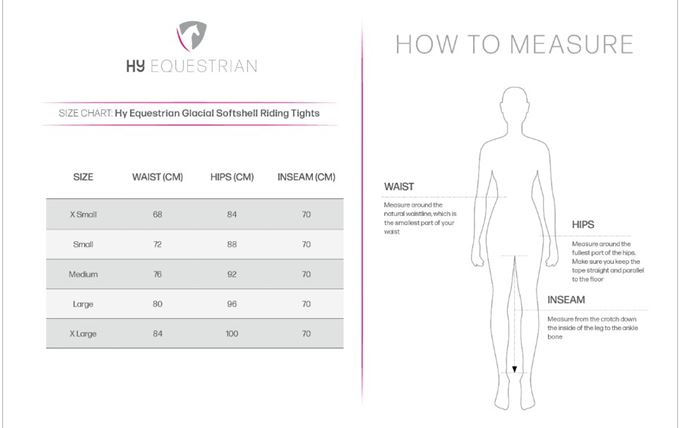 Designed for any activity, these flattering and flexible Hy Equestrian Glacial Softshell Riding Tights in a softshell fabric have a stretch waistband for comfort and a brushed fleece lining for warmth.