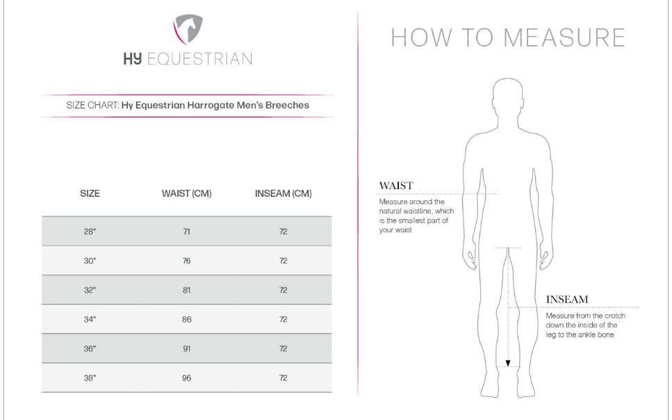 Hy Equestrian Harrogate Men's Breeches feature pleated sides to reduce restriction, side and back pockets both with stud closures, a sturdy zip, belt loops and reinforced stitching. The silicone knee patches add extra grip and the no bulk stretch hem ankles mean they are comfortable under long boots.