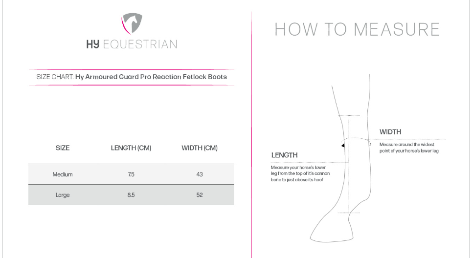 These anatomically shaped Hy Equestrian Armoured Guard Pro Reaction Fetlock Boots, with tough strike pads and outer shell are designed to protect the horse’s fetlock joints from knocks and bangs.