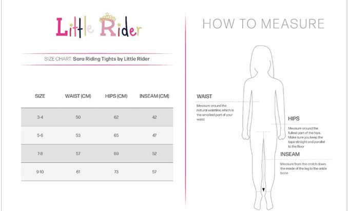 Sara Riding Tights By Little Rider are finished with non bulk stretch hem ankles to allow for comfort under boots or long socks, handy pocket to the left leg to keep possessions safe and Little Rider emblem to complete the look.