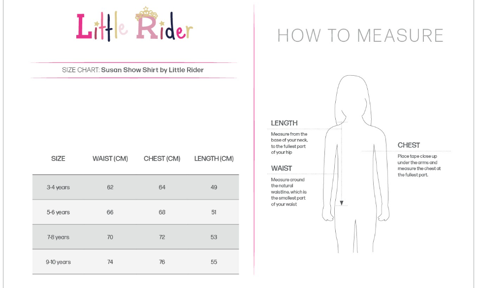 This brand new Susan Show Shirt by Little Rider is perfect for all pony loving princesses!