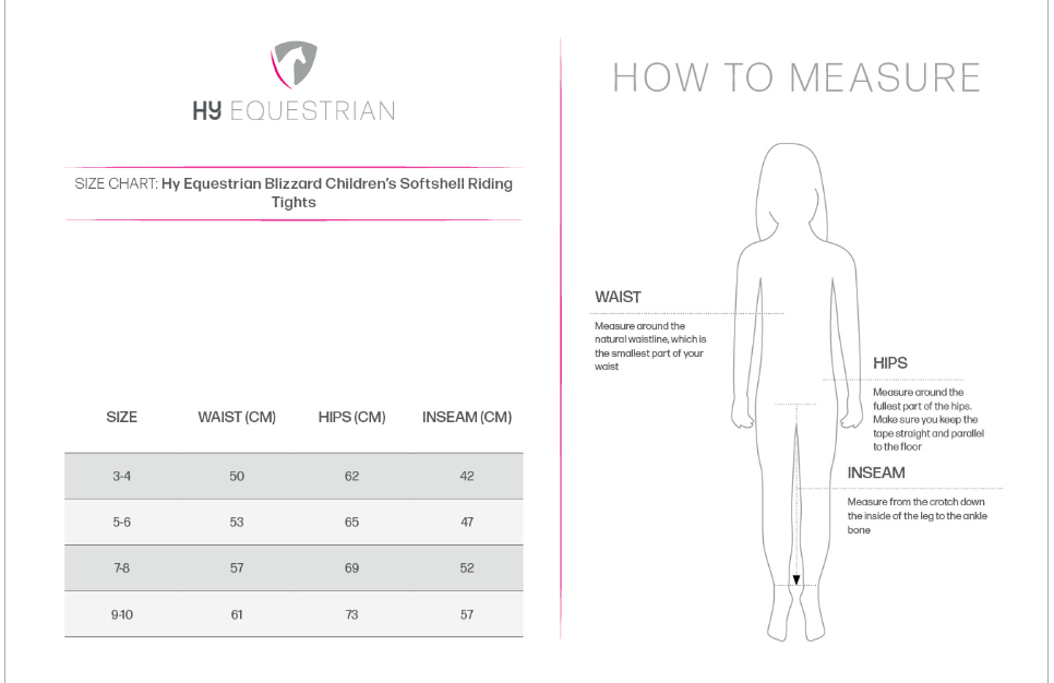 These comfortable and flexible Hy Equestrian Blizzard Children's Softshell Riding Tights come in a soft-shell fabric with a stretch waistband for comfort and a brushed fleece lining for warmth.