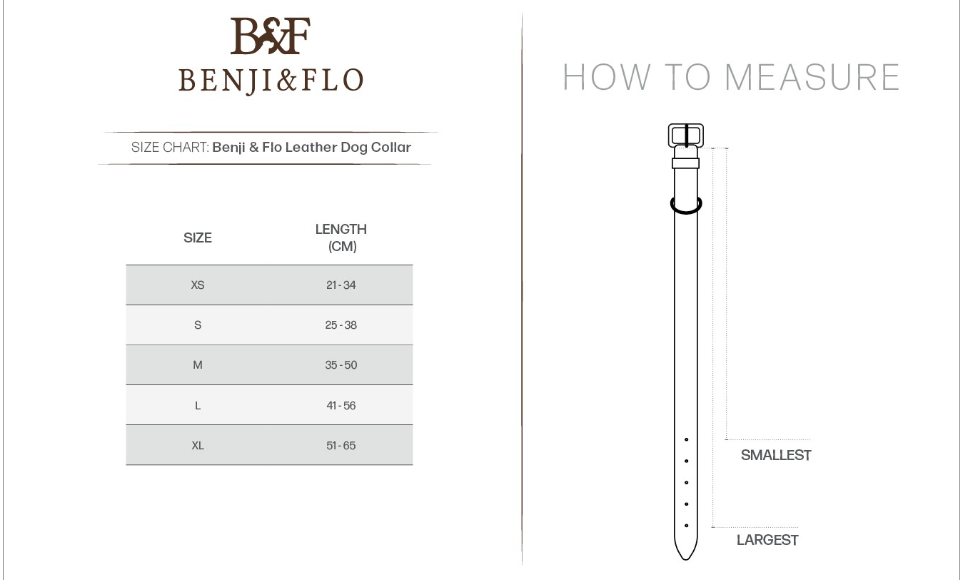 Featuring solid hardware for durability and longevity. The Deluxe Padded Leather Dog Collar Includes a gorgeous Benji & Flo matching dog tag to engrave your dog’s name on.