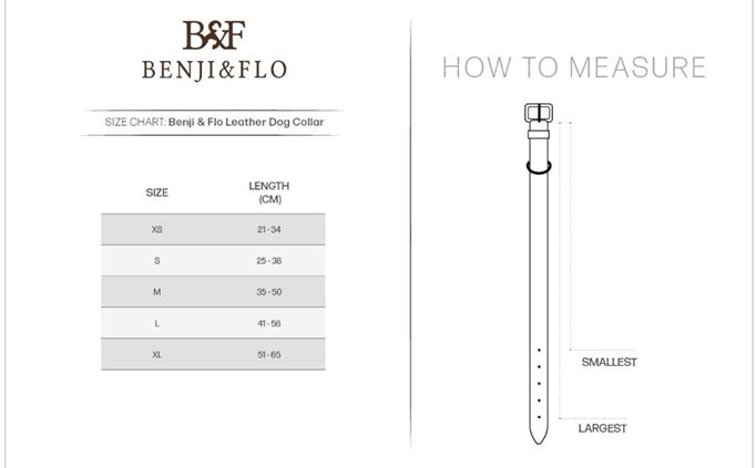 Featuring robust hardware for durability and longevity. Includes a gorgeous Benji & Flo matching dog tag to engrave your dog’s name on.