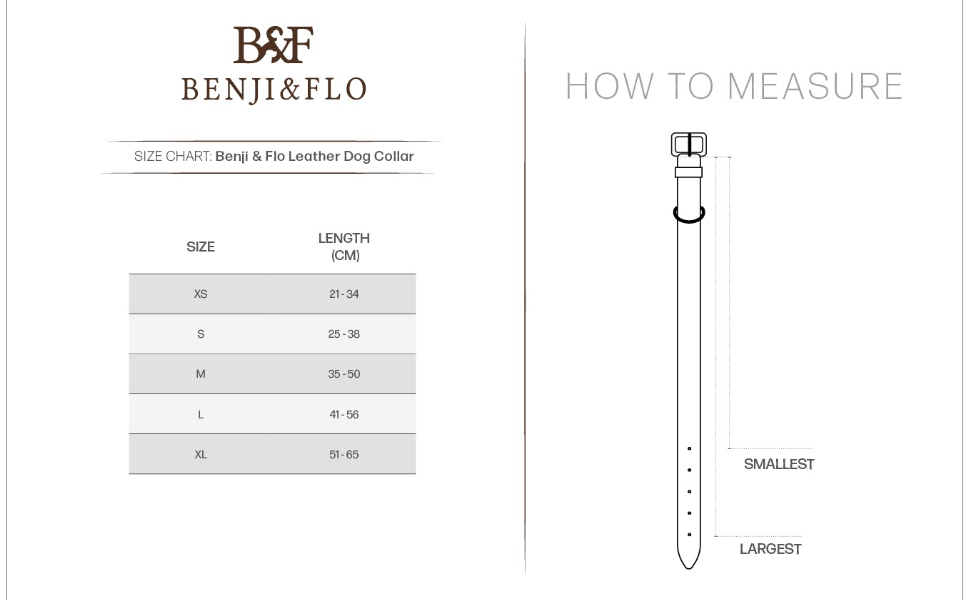 Featuring robust hardware for durability and longevity. Includes a gorgeous Benji & Flo matching dog tag to engrave your dog’s name on.