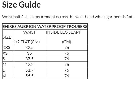 Style highlights include waterproof and breathable design, taped seams, silky nylon lining, elasticated waist, two outer zip pockets, and Aubrion prints. Boasting a waterproof rating of 5000mm and breathability of 5000g/m2, these trousers also feature a Durable Waterproof Repellent (DWR) to prevent saturation, causing water to bead and run off the fabric.
