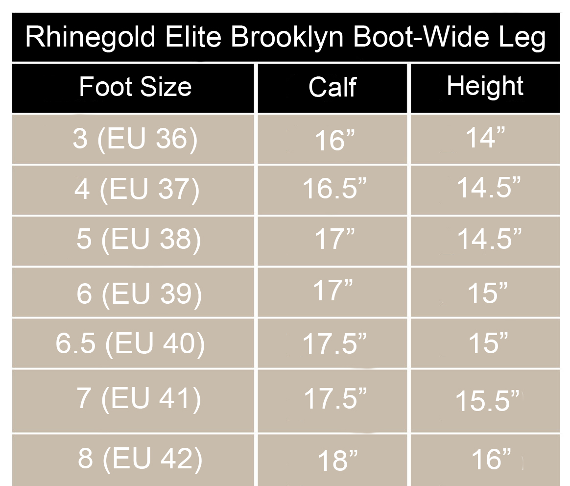 Please note that these boots are not waterproof, and are not designed to be ridden in (and doing so will void any warranty). The size chart is only a guide, and all measurements are approximate.