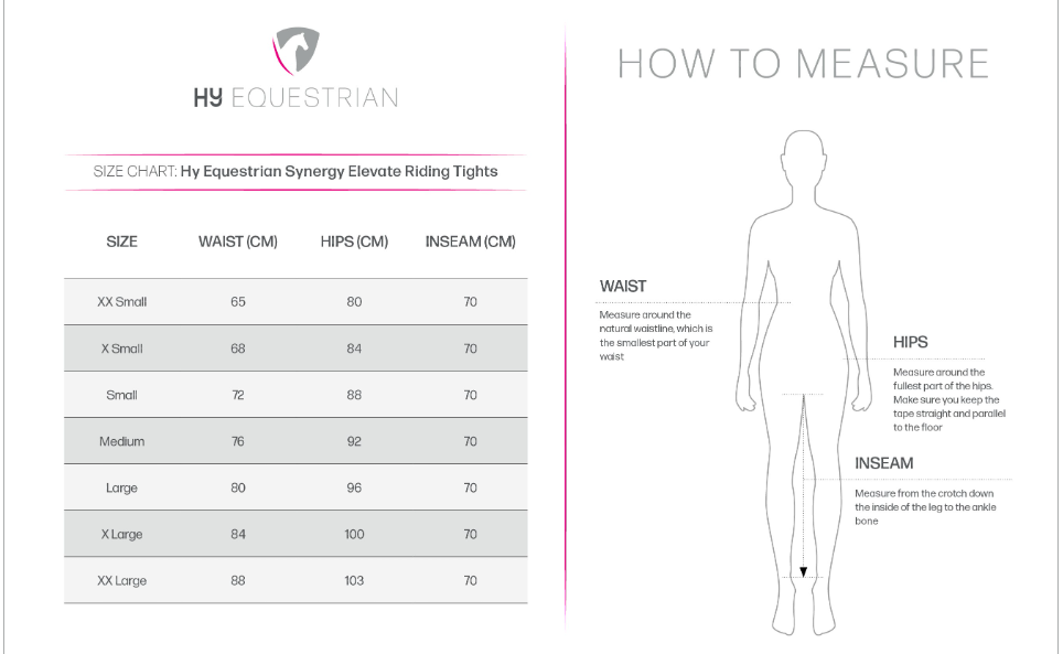 The Hy Equestrian Synergy Elevate Riding Tights are made from a flexible material to allow unrestricted movement, that features moisture wicking properties to wick sweat away from the skin to offer a refreshing fit all day.