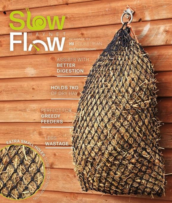 The Hy Equestrian Slow Flow Haynet is perfect for greedy feeders, those on a diet or horses that need their ad lib forage controlled.