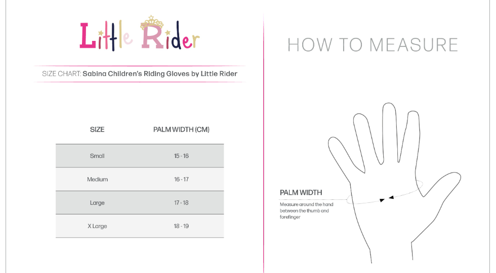 The Sabina Children's Mesh Riding Gloves are finished with a touch tape tab detailed with Little Rider emblem.