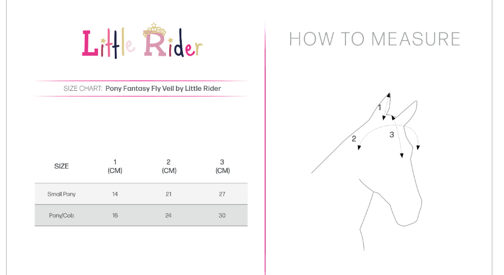 Not only will this protect your pony from flies and bugs but will also enchant all your equestrian friends! Finished with a silver glitter Little Rider logo to the ear.