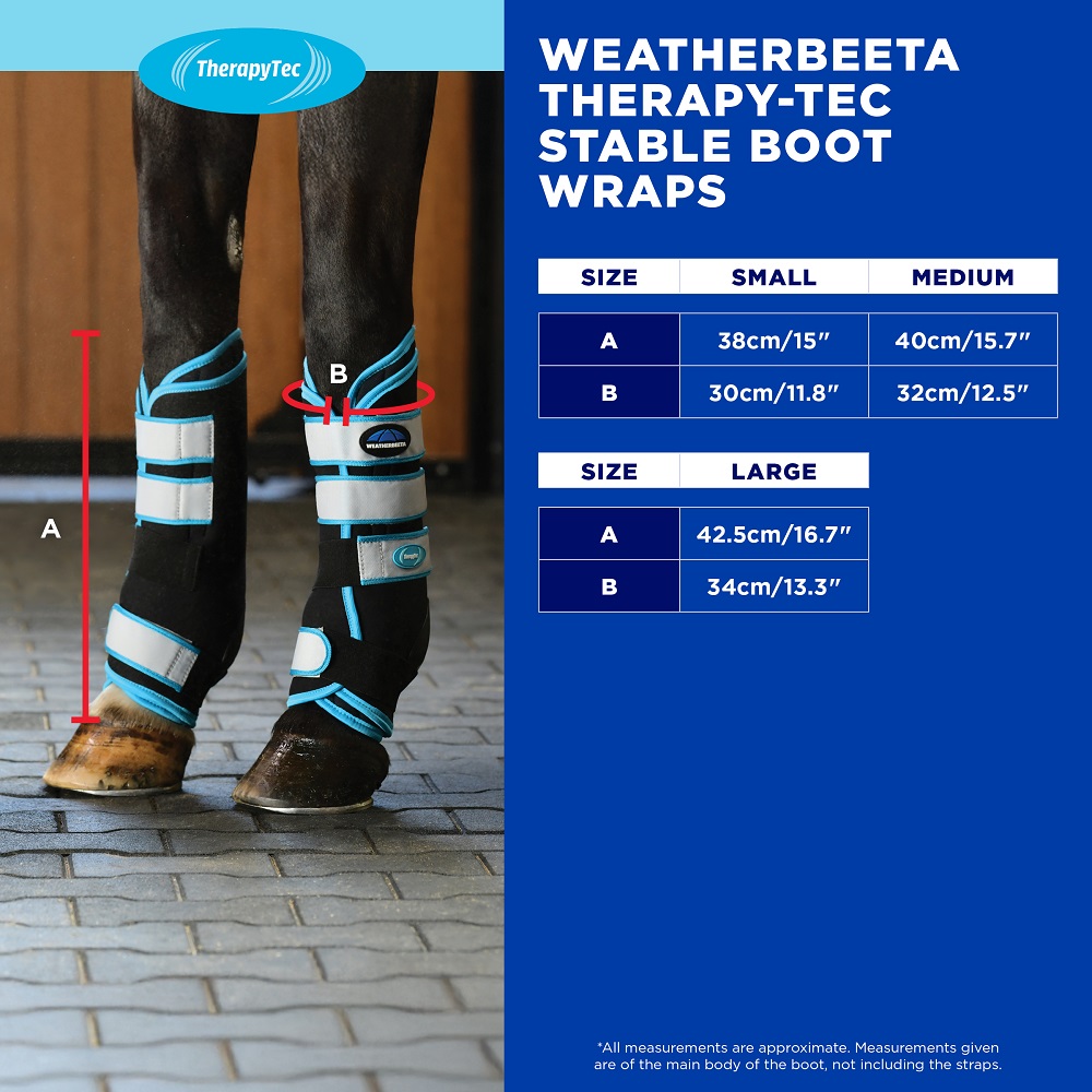 Show your horse the attention it deserves with the WeatherBeeta Therapy-Tec Stable Boot Wraps, designed to support recovery, rehabilitation, and everyday leg protection. Ideal for use in the stable, during transport, or while standing at events, these versatile boots provide both comfort and performance. The tough neoprene outer ensures a secure and supportive fit, while the built-in fetlock protection shell adds an extra layer of safety. Inside, the soft, removable ceramic-infused pads help encourage circulation and speed up recovery. With easy-to-use touch tape fastenings, these wraps are simple to apply and adjust, making them a practical addition to your horse’s care routine.