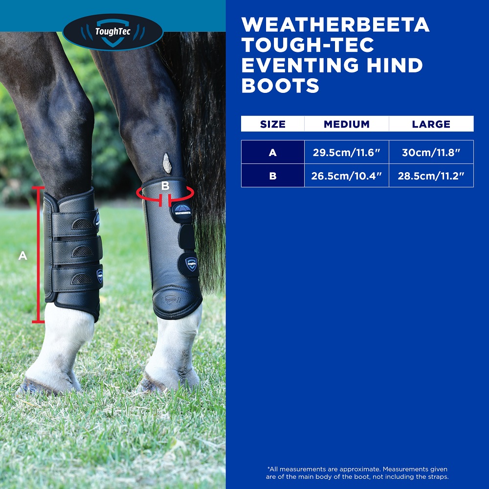 Prepare for peak performance with the WeatherBeeta Tough-Tec Eventing Hind Boots, your go-to solution for serious protection during high-impact riding. Tailored for eventing athletes, these boots are equipped with a vented cross-country design that promotes breathability and prevents tendon heat build-up in the most intense situations. The tough yet lightweight construction shields against knocks and strikes without hindering your horse’s natural movement. Comfort is key, which is why the inner neoprene lining is designed to cushion and support while resisting chafing. Whether you're training or competing, these boots provide dependable protection, making them an essential part of any performance-focused rider’s gear.