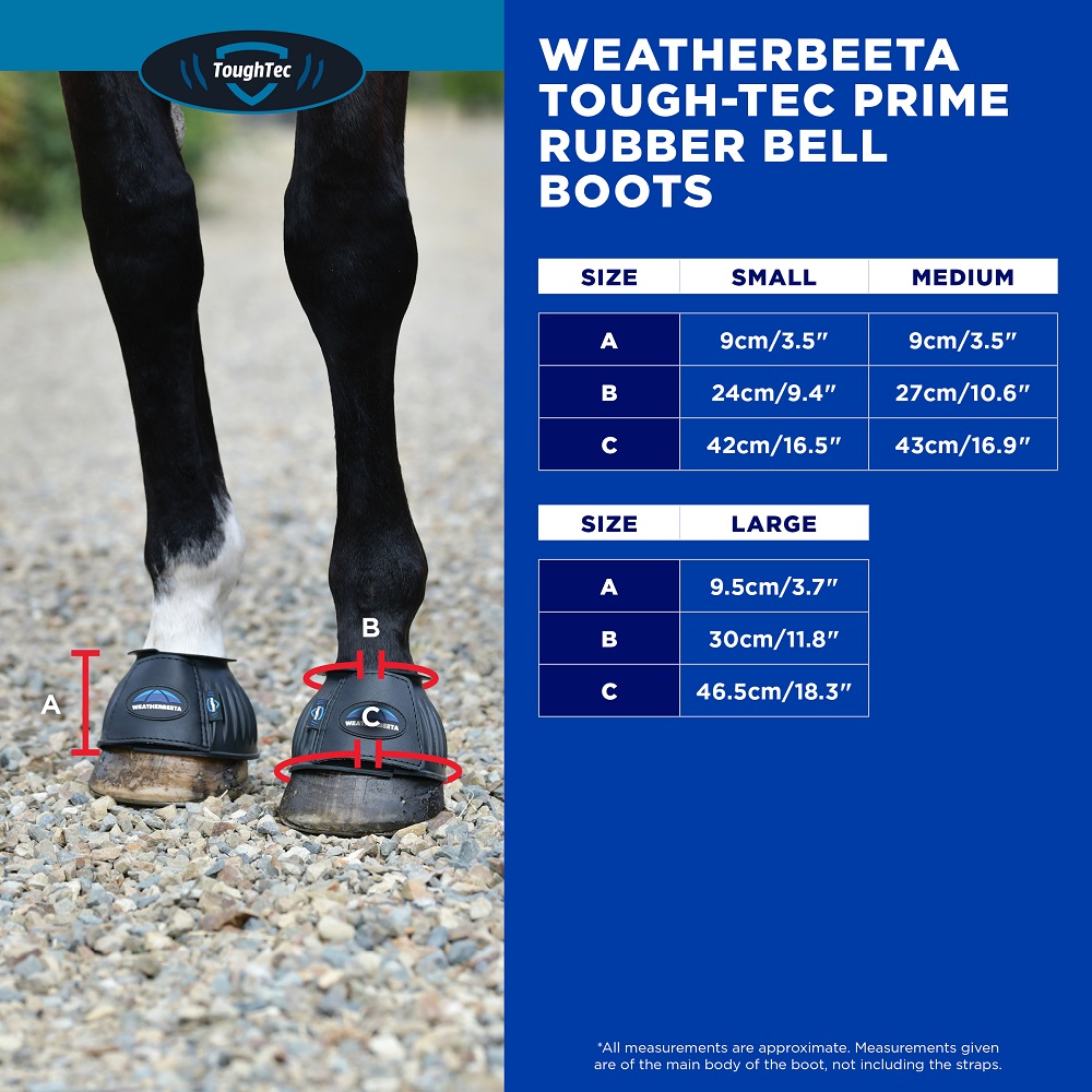 Ensure your horse is protected from hoof to pastern with the WeatherBeeta Tough-Tec Prime Rubber Bell Boots. These essential boots are built from hard-wearing rubber to handle the rigours of daily training and turnout. With easy touch tape closures for a fuss-free fit, they deliver practical, no-nonsense performance with every wear. Whether you're training at home or prepping for a big event, these boots help prevent overreach injuries and keep shoes firmly in place.