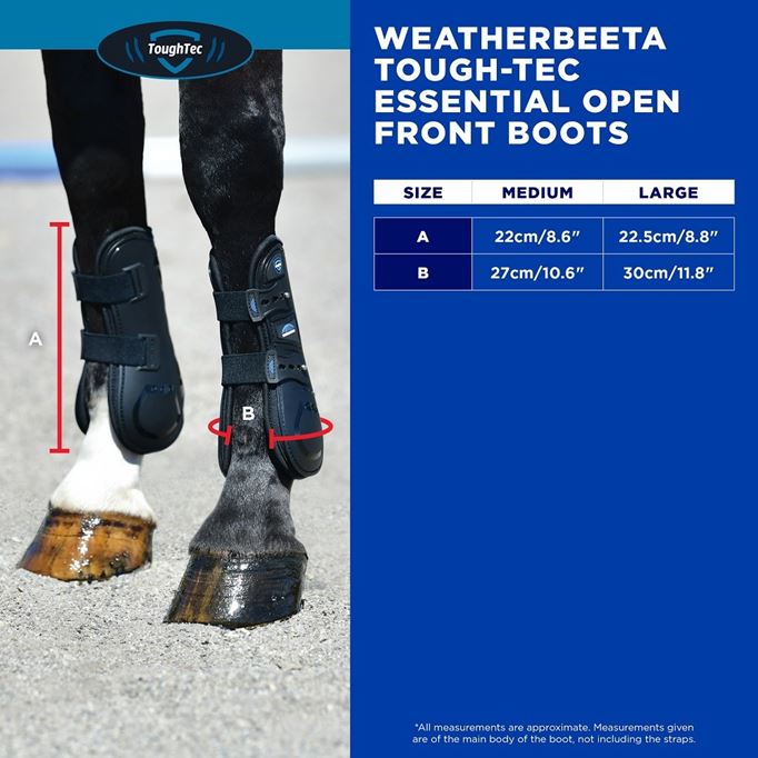 Give your horse the protection and performance edge they deserve with the WeatherBeeta Tough-Tec Essential Open Front Boots. Engineered to safeguard tendons from impact, these boots feature a rugged TPU outer shell that withstands daily wear and tear, while the breathable neoprene lining keeps legs cool and comfortable. Built-in ventilation enhances airflow during movement, helping to prevent overheating during even the most demanding rides. Whether you're schooling at home or heading into the competition ring, these boots combine advanced protection with a secure, comfortable fit for all-around confidence and style.