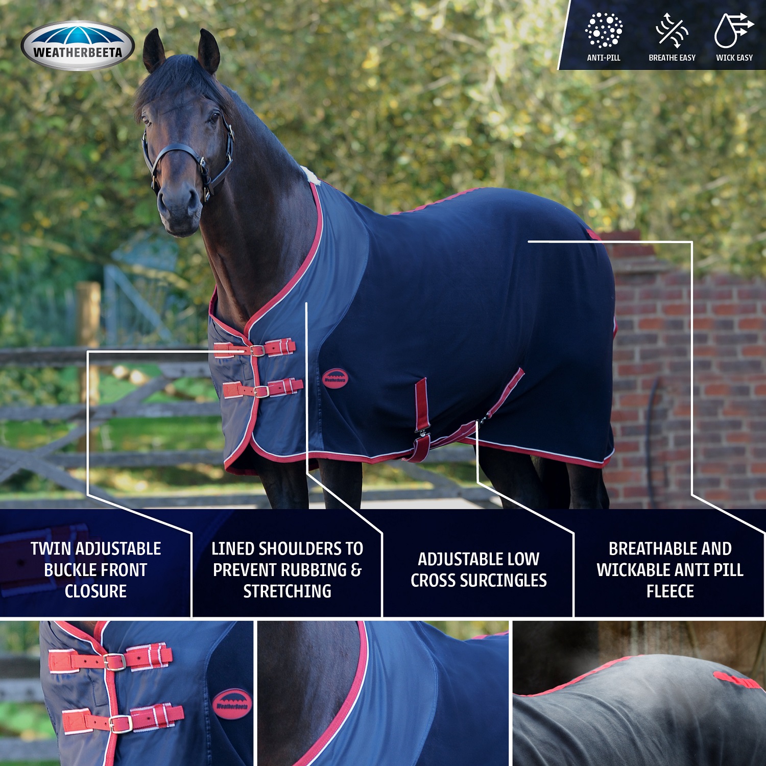 The Weatherbeeta Fleece Cooler Rug is a versatile breathable and wickable fleece rug with anti-pill finish and nylon overlay on the shoulder to prevent rubbing or stretching, ideal for travelling, cooling or as an under rug.