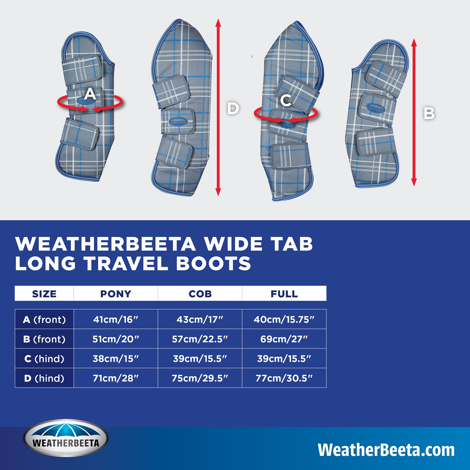 Weatherbeeta Wide Tab Long Travel Boots (set of 4) feature a tough, durable 1000 Denier outer, and a soft fleece lining.