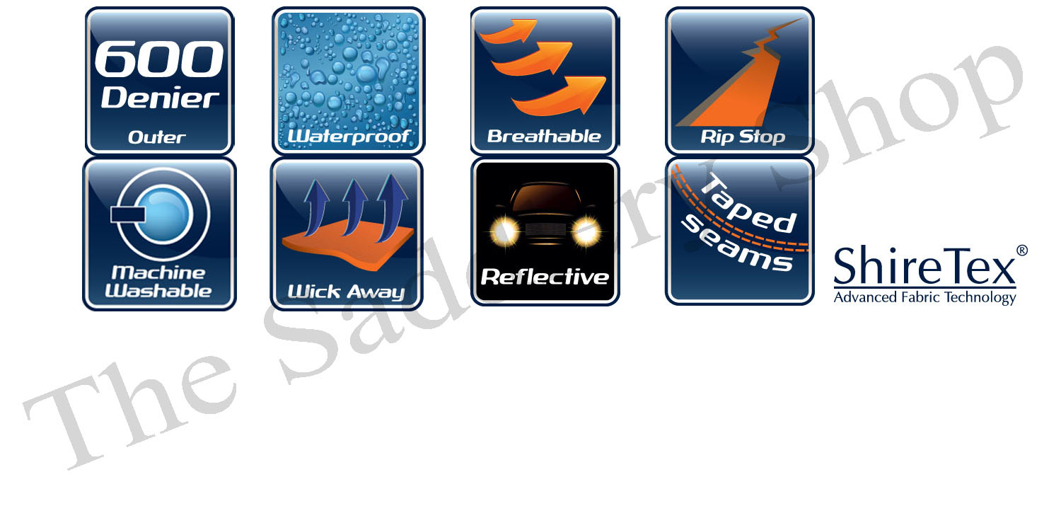 This versatile exercise sheet can be worn around the saddle for easy removal or draped over the rider's legs for added warmth and dryness. Its practical design is perfect for shows, allowing for quick adjustments. Reflective strips enhance visibility, while touch-close fastenings, girth loops, and a fillet string ensure a secure fit.