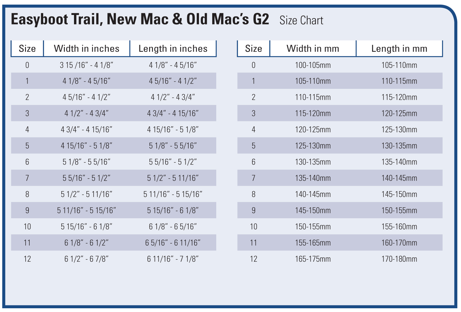 Hoof boots (unless otherwise stated in the description) are intended for barefoot horses doing ridden work. They should be sized and fitted within 7 days of a trim suitable for a working barefoot horse (or at a time when there is nothing at all to trim, and there is still a good rolled edge). The size charts are a good guide to sizing, but this cannot take in to account of the angle of the hoof, heel height and other features of the hooves which will ultimately also effect the fit of the boots.