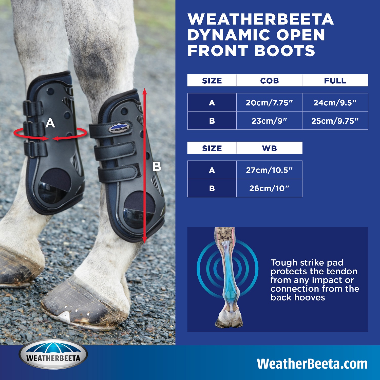 The Weatherbeeta Dynamic Open Front Boots are made from a lightweight and durable outer and shapes to the horse's leg with a memory foam inner for maximum comfort and protection.