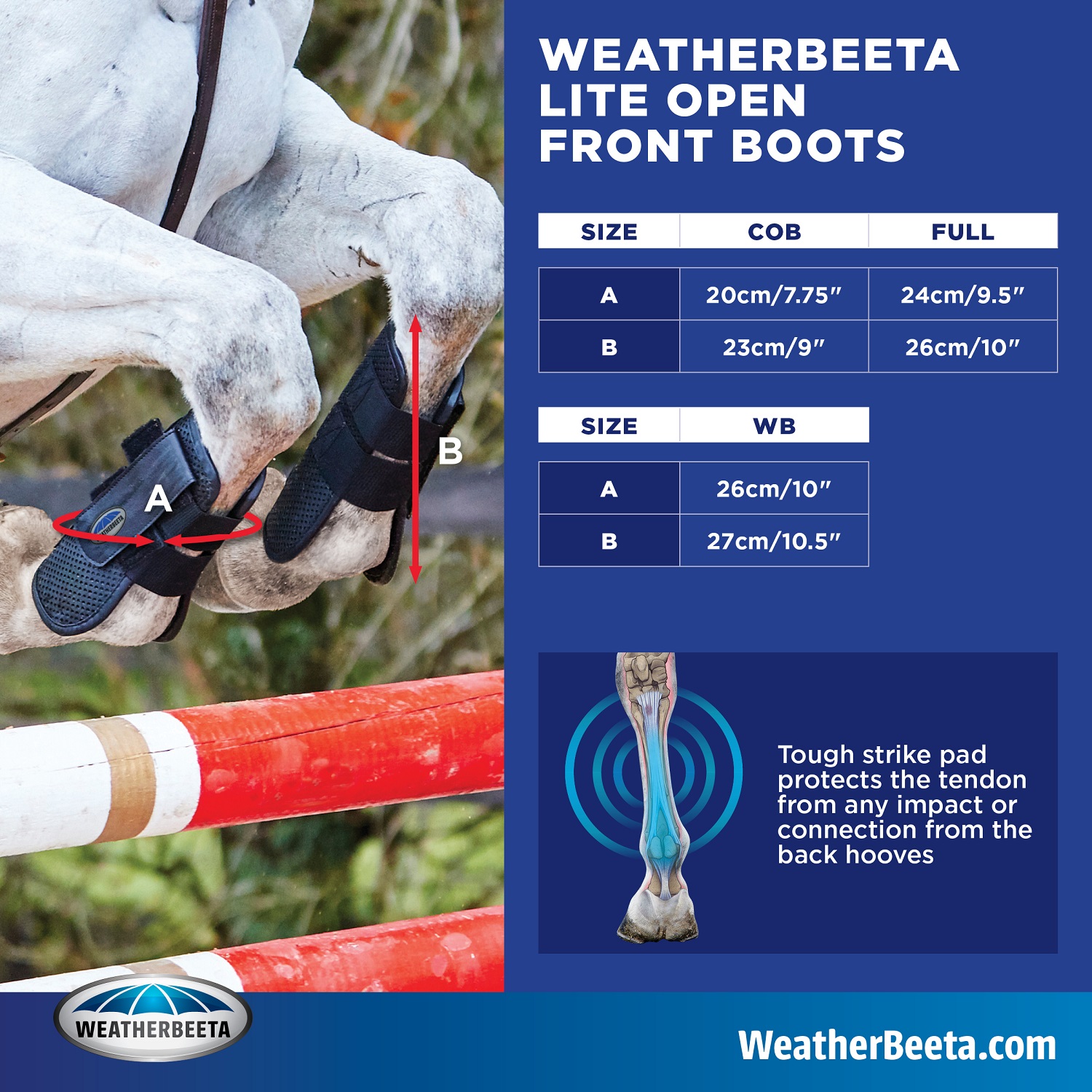These Weatherbeeta Lite Open Front Boots features easy to use and secure sandwich closures and are shaped to the horse's leg for comfort and protection.